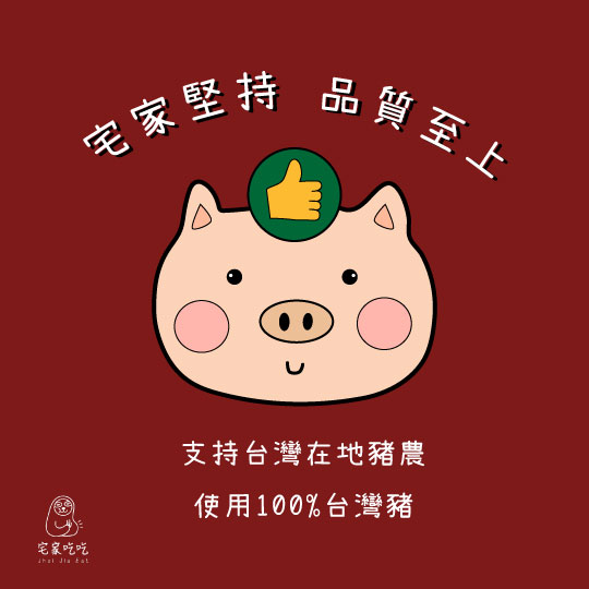 宅家一直都堅持只選擇優良合格的台灣食材廠商,可以的話都會親自拜訪產地一趟,確保每個東西是合乎我們預期。宅家創立品牌初期時意外地接觸到目前配合的屠宰場,他們是養豬戶起家,不懂得行銷、看到他們為了努力維護豬隻的品質、防止豬隻生病,不分日夜辛勤地照料這些豬隻們,我們自己都很感動, 也覺得符合宅家品牌想傳達的理念,因為有他們在第一線為我們做最嚴謹的把關品質, 我們才能製作健康安心的黑豬肉手工水餃送到每個客人手上。